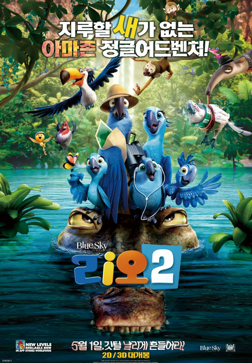 리오 2는 2014년에 개봉한 영화이다. 리오 2는 2011년에 개봉한 리오의 후속 편이다. 이야기는 야생을 한 번도 겪어보지 못한 도시 앵무새 블루와 블루와는 정반대의 매력을 지닌 쥬엘을 만나 개구쟁이 세 아이를 낳고 평화로운 생활을 한다. 그러던 어느 날 동족에 대한 소식을 접하고 아내 쥬엘의 설득으로 도시에서 3,200km 떨어진 아마존으로 모험을 떠나면서 시작된다. 관객은 제시 아이젠버그(Jesse Eisenberg)가 목소리를 낸 희귀하고 길들여진 블루 마코가 앤 해서웨이(Anne Hathaway)가 목소리를 낸 그의 친구 주얼과 함께 부모가 되기 위한 도전들을 항해하는 것을 발견한다. 이 커플은 모험적인 세 마리의 병아리들과 함께 블루의 조류 친척들을 찾기 위해 아마존 열대 우림으로 여행을 떠난다. 블루의 너그럽고 도시에 사는 성격이 오랫동안 잃어버렸던 가족의 야생적이고 길들여지지 않은 방식과 충돌하면서 줄거리는 두터워진다. 아마존의 무성한 녹음 속에서 등장인물들은 정글의 복잡성을 항해하는 것부터 악당 벌목 거물과 맞서는 것까지 다양한 도전들에 직면한다. 등장인물들이 산림전용의 위협으로부터 그들의 집과 열대우림의 다양한 거주자들을 보호하기 위해 힘을 합치면서 이야기는 흥미진진한 전환을 맞이한다. 줄거리는 흥미로울 뿐만 아니라 미묘하지만 영향력 있는 환경적 메시지를 전달하며, 남녀노소를 불문하고 시청자들이 자연의 경이로움을 감상하고 보존하도록 격려한다.