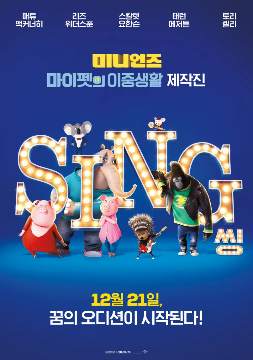 씽의 마음과 영혼은 그것의 매혹적인 줄거리와 시각적인 장관뿐만 아니라 스타들이 많이 출연하는 목소리 캐스팅의 탁월한 연기에도 있다. 매튜 맥커너히(Matthew McConaughey), 리즈 위더스푼(Reese Witherspoon), 스칼렛 요한슨(Scarlett Johansson)과 같은 일류 배우들의 결합은 애니메이션 등장인물들을 단순한 그림에서 활기차고, 공감할 수 있는 개성으로 끌어올린다. 재능과 애니메이션 사이의 이러한 시너지는 부인할 수 없이 이 영화의 광범위한 성공의 원동력이다. 카리스마 넘치는 화면 속 존재감으로 유명한 매튜 맥커너히는 코알라 극장 주인인 버스터 문에게 매력과 투지가 완벽하게 녹아든 모습으로 생동감을 불어넣는다. 노래 대결의 원동력인 맥커너히의 보컬 실력은 버스터의 열정을 반영해 남녀노소 관객들에게 공감을 불러일으키는 캐릭터를 탄생시켰다. 다재다능하기로 소문난 리즈 위더스푼은 가수 지망생이자 과로한 주부 돼지 로지타라는 캐릭터에 공감할 만한 매력을 불어넣는다. 위더스푼의 보컬 연기는 로지타가 자아 발견을 하게 되는 여정에 깊이를 더해 애니메이션 화면을 뛰어넘는 캐릭터로 변신, 꿈과 결단의 상징이 된다. 특유의 목소리와 화면 속 카리스마를 지닌 스칼렛 요한슨은 반항적인 펑크록 호저 애쉬에 생명력을 불어넣는다. 요한슨의 목소리 전달은 애쉬의 반항적인 정신과 부합할 뿐만 아니라 캐릭터의 감정적 깊이에 기여한다. 애쉬가 고정관념을 깨고 개성을 수용하는 상징이 되는 데에는 요한슨의 미묘한 연기가 큰 역할을 한다. 배우들의 개성을 애니메이션 배우들에게 불어넣을 수 있는 능력은 단순한 목소리 연기를 넘어 관객들에게 변화를 주는 경험이 된다. 각각의 캐릭터는 배우의 카리스마를 전달하는 그릇이 되어, 단순히 애니메이션 인물들뿐만 아니라 사랑하는 인물들이 시청자들의 마음에 새겨진다.
